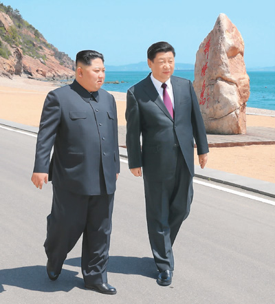 5月的大连,青山萦翠,碧海流云。习近平同金正恩举行会谈,并为金正恩举行欢迎晚宴,一同散步、出席午宴,在亲切友好的气氛中,两党两国最高领导人就中朝关系及共同关心的重大问题全面深入交换意见。