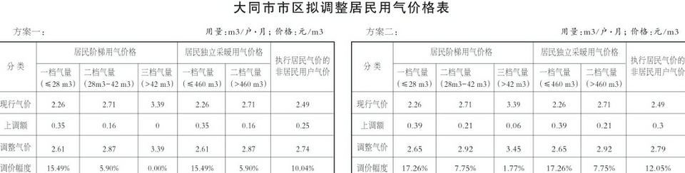 昨日上午,市发改委召开调整市区居民用管道天然气销售价格和核定其配气价格以及建立天然气上下游价格联动机制价格听证会,消费者代表、华润燃气有限公司以及专家学者20位代表围绕两个调整方案(详见下表)进行了充分的讨论,发表了各自不同的看法。