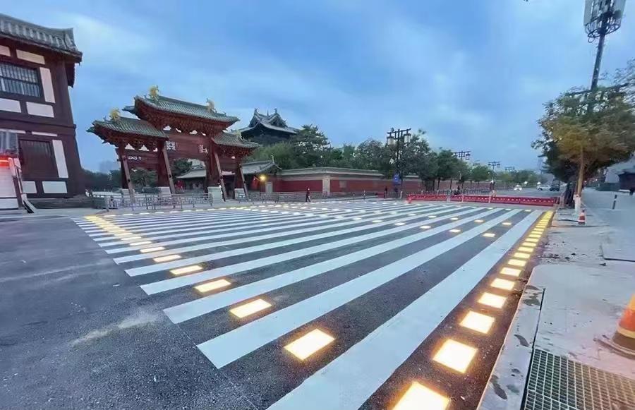 近日,由大同市公安局交警支队设计施划的首条智慧斑马线正式投入使用。斑马线两边地面上安装的灯在慢慢闪烁着,闪闪发光的斑马线就像一条“星光大道”,尤为醒目。现场,当有行人迈进斑马线范围时,地面的灯闪烁频率会加快。