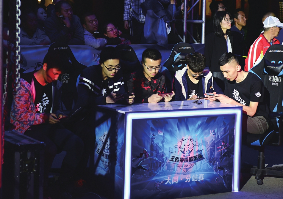 当晚,华严寺广场热闹非凡,比赛还未开始,熙熙攘攘的人群就已经把比赛区围得水泄不通,有《王者荣耀》的忠实玩家,有驻足观看的游客,更有好奇的小朋友们,等待《王者荣耀》城市赛的开赛。第一场比赛是友谊赛,来自我市的两支战队首先展开对绝,玩家使用各自的手机,在虚拟的网络世界展开没有硝烟的战斗,现场的LED屏实时直播着战况,巧妙的走位、默契的开团、及时的支援,选手们的各种精彩操作令前来观赛的玩家大呼过瘾。